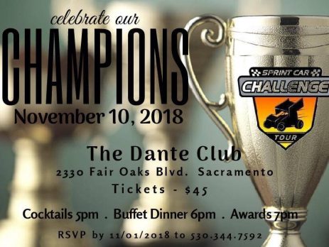 The 2018 C&H Veterans Hunt Magneto Wingless Sprint Awards Banquet will be combined with Sprint Car Challenge Tour’s. Trophies and point fund checks for the top 10 in points will be awarded. The date will be Saturday Night, November 10th at the Dante Club in Sacramento. Located at 2330 Fair Oaks Blvd in Sacramento. Cocktails at 5 pm, Buffet Dinner 6 pm, and Awards at 7 pm. Cost is $45 per person. Please [...]