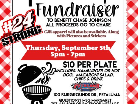 This Thursday Night, September 5th will be the Chase Johnson Benefit BBQ at Petaluma Speedway. $10 for a burger, drink, and chips. All proceeds will go directly to Chase. Please enter the speedway through the pit area. Time is 5 to 7 pm.