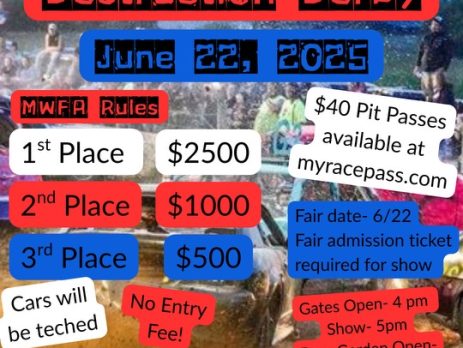 For the first time in over a decade Petaluma Speedway will be hosting a demolition derby on Sunday, June 22nd, during the annual Petaluma Fair. MWFA rules for competitors. $2,500 to win, $1,000 for 2nd, $500 for 3rd. No entry fee for derby competitors. $40 pit passes. The derby is part of the fair’s entertainment and included in your fair ticket purchase price.