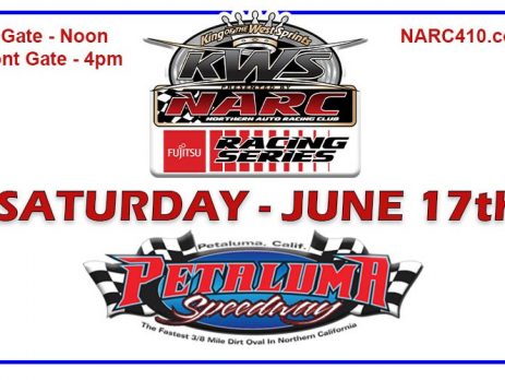 (6/11/17) Petaluma, CA … The lightening fast 3/8 mile oval of Petaluma Fairgrounds Speedway is set to host the 900-horsepower King of the West-NARC Fujitsu Sprint Car Series on Saturday, June 17th.